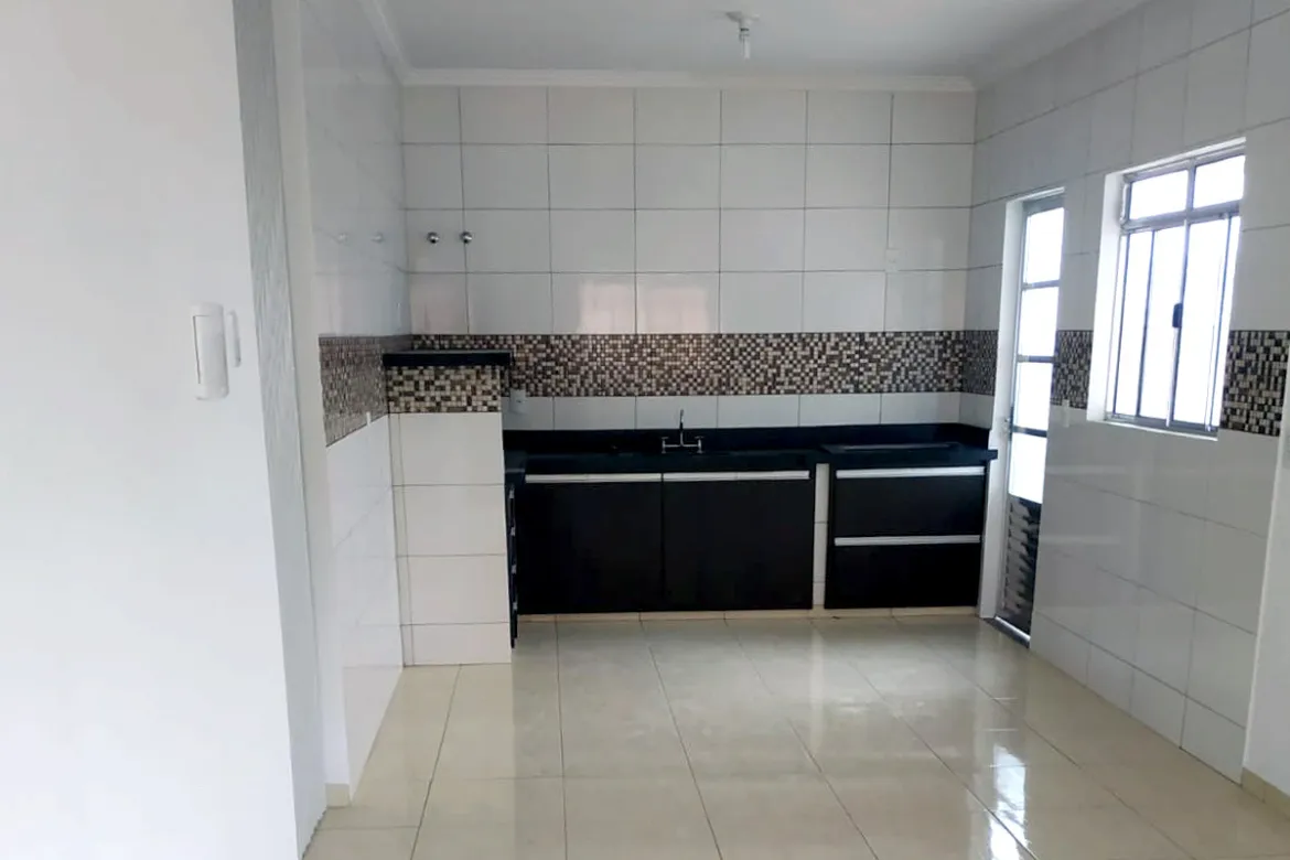 Sala ampla, cozinha, 2 quartos, banheiro social.